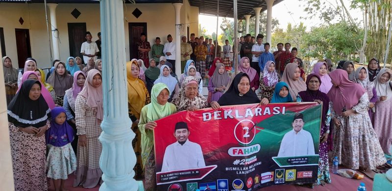 SUMENEP -Masyarakat Desa Manding Laok Kecamatan Manding melakukan deklarasi bersama sejumlah tokoh masyarakat (tomas), pemuda dan semua elemen masyarakat untuk mendukung sekaligus memenangkan pasangan calon bupati dan wakil bupati Sumenep nomor urut 02, Fauzi – KH Imam Hasyim di Pilkada Sumenep.