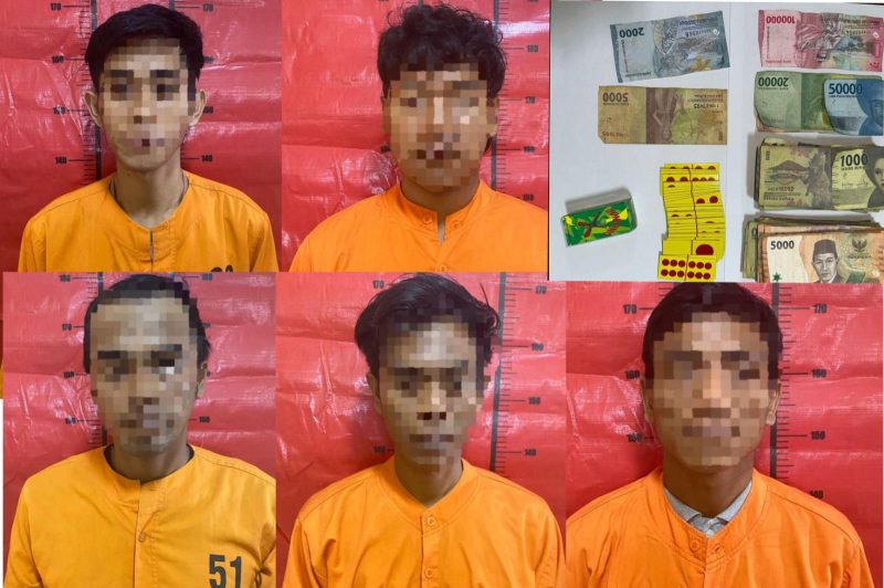 Kelima penjudi tersebut berinisial BS (20) , SM (31), AT (21) , SA (34), MA (28).