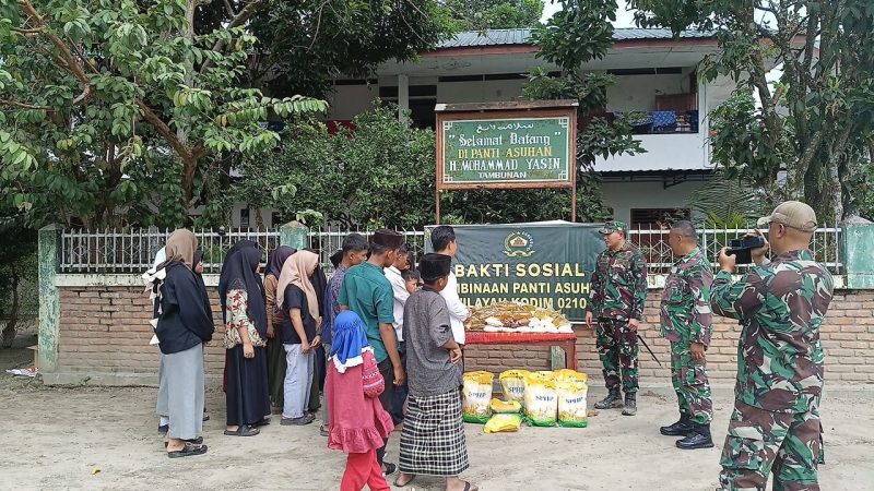 Kapten Inf Gayor Sihombing menyampaikan tujuan kunjungan Dandim ke Panti Asuhan H Mohammad Yasin adalah untuk menjalin silaturahmi dan memberikan bantuan sembako kepada anak-anak yatim piatu di panti tersebut.