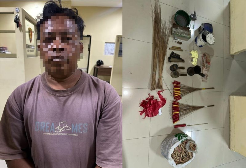 “Akibat perbuatannya tersangka dijerat dengan pasal 1 ayat (1) dan (3) UU Darurat RI Nomor 12 Tahun 1951 tentang handak dengan ancaman hukuman minimal 12 tahun penjara dan maksimal seumur hidup,” pungkasnya.
