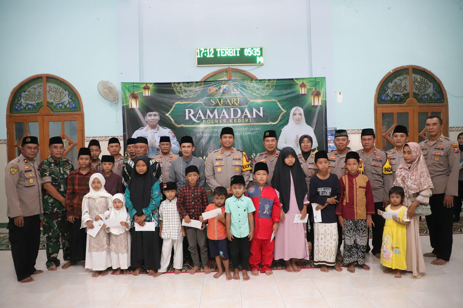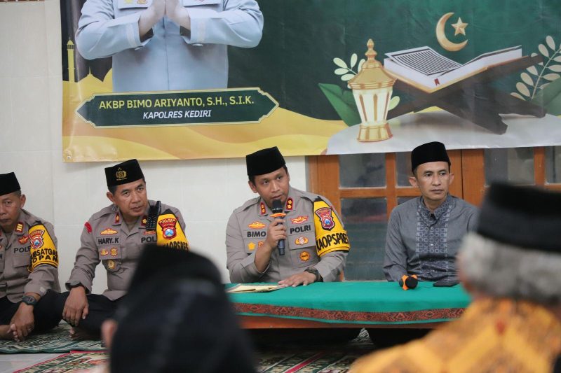 Kediri– Suasana hangat penuh kebersamaan terasa di Masjid Al-Falah, Dusun Ngrangkok, Desa Klampisan, Kecamatan Kandangan, Kabupaten Kediri, saat Kapolres Kediri AKBP Bimo Ariyanto, S.H., S.I.K., bersama para PJU Polres Kediri menggelar Safari Ramadan.