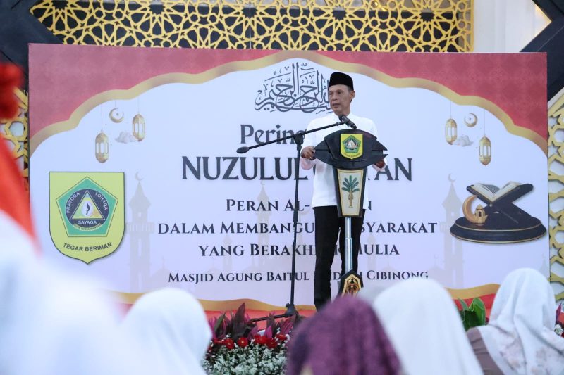 Cibinong – Laksanakan arahan Bupati Bogor, Rudy Susmanto, Wakil Bupati Kabupaten, Jaro Ade lakukan Peringatan Nuzulul Qur’an yang diselenggarakan di Masjid Baitul Faizin, Cibinong, pada Minggu (14/3/25).