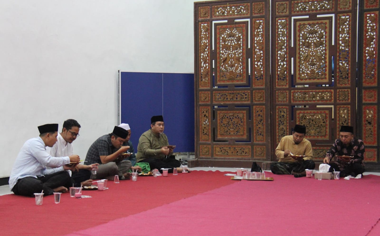 Menjelang waktu berbuka, suasana semakin khidmat ketika Ustaz Ikrom Salehadi memimpin doa bersama. Kemudian, seluruh peserta menikmati hidangan berbuka dalam kebersamaan yang penuh rasa syukur.
