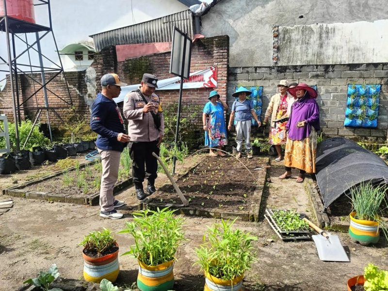 Personel Polsek Plosoklaten menyambangi warga dan melakukan pemantauan langsung terhadap pemanfaatan lahan pekarangan, seperti penanaman sayur, tanaman obat keluarga, serta kebun kecil.