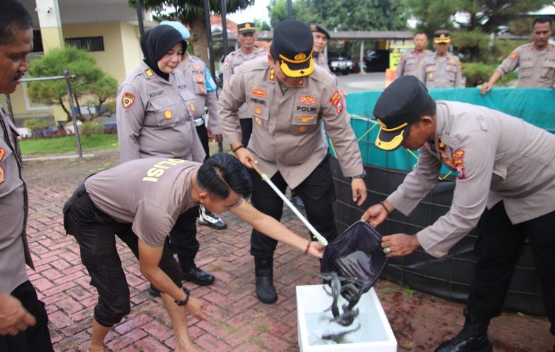 SUMENEP – Polres Sumenep Polda Jatim kembali menunjukkan komitmennya dalam mendukung ketahanan pangan nasional dengan menggelar panen ikan lele di Pekarangan Polres Sumenep