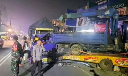 Menurut informasi yang dihimpun, truk yang dikemudikan Miftahul Falah melaju dari arah barat ke timur. Saat tiba di lokasi kejadian, truk tersebut tiba-tiba oleng ke kiri dan menabrak truk Mitsubishi bernomor polisi Z 8509 CV yang sedang parkir di bahu jalan sebelah utara.