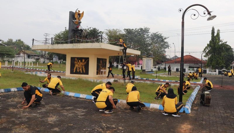 SUMENEP – Dalam Rangka Menyambut Hari Bhayangkara ke-79, jajaran Polres Sumenep melaksanakan kegiatan bakti religi dengan membersihkan lingkungan Taman Makam Pahlawan (TMP) Jokotole di Desa Pandian Kec. Kota Sumenep Kab Sumenep. Jum’at (20/6/2025)