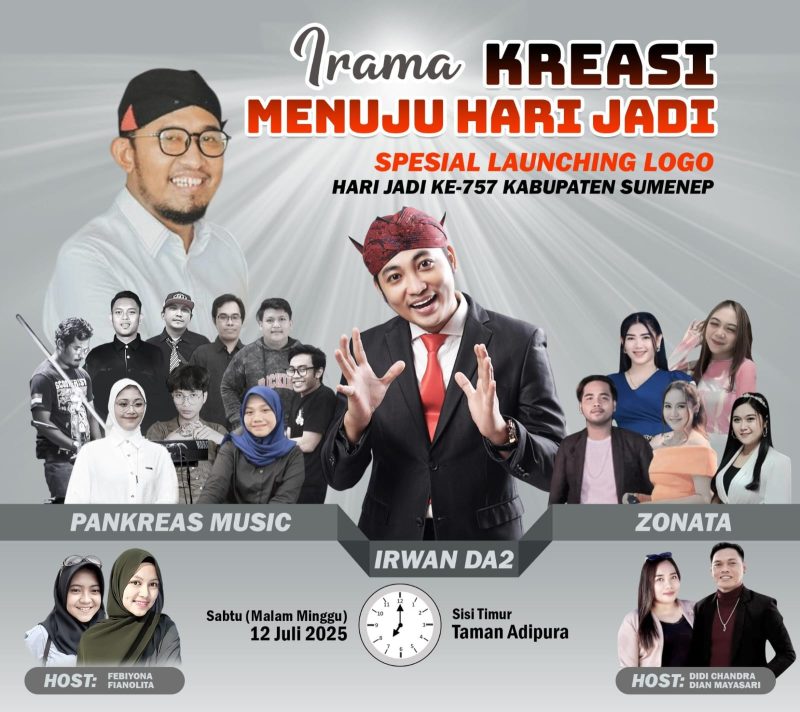 SUMENEP — Pemerintah Kabupaten Sumenep mengajak seluruh masyarakat untuk hadir dan meramaikan acara Malam Spektakuler Launching Logo Hari Jadi Kabupaten Sumenep ke-757 yang akan digelar malam ini, Sabtu, 12 Juli 2025, mulai pukul 19.00 WIB di kawasan Timur Taman Adipura Sumenep.