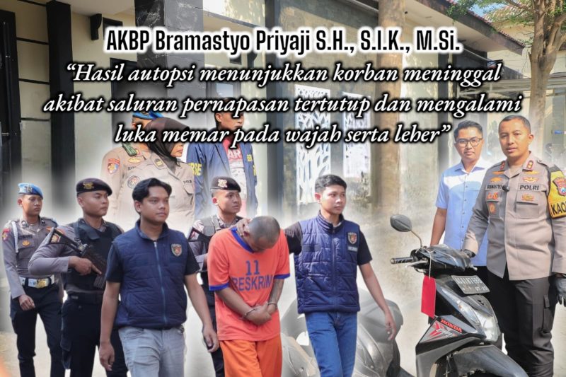 “Hasil autopsi menunjukkan korban meninggal akibat saluran pernapasan tertutup dan mengalami luka memar pada wajah serta leher,” jelas AKBP Bramastyo.