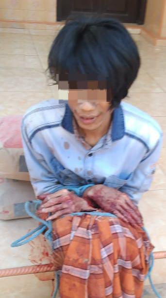 Menurut keterangan pihak kepolisian, insiden bermula saat seorang saksi keluar dari kamar mandi dan mendapati pelaku M hendak masuk ke dalam rumah dengan kondisi tangan bersimbah darah. Terdapat luka sayat di pergelangan tangan kiri pelaku dan darah terlihat membasahi bagian kiri bajunya.
