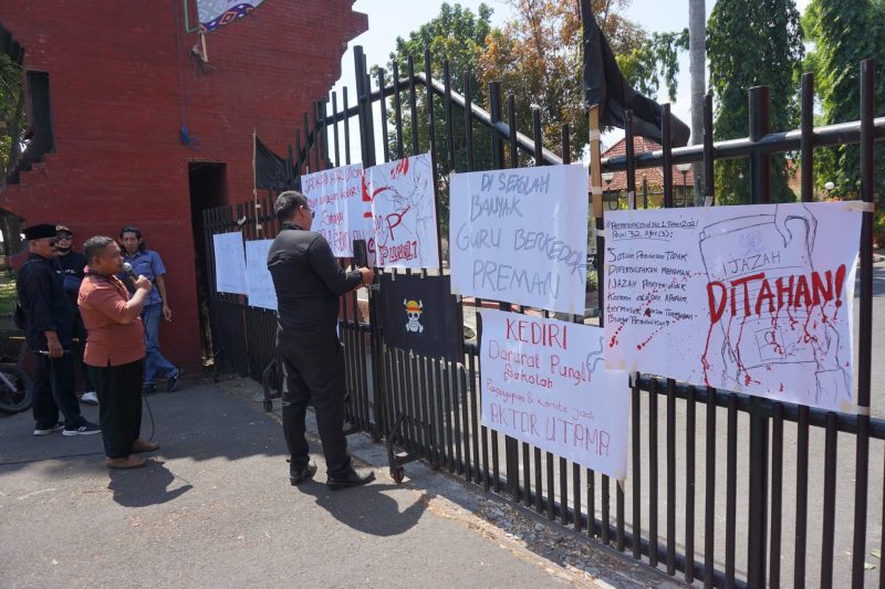 KEDIRI, Detikzone.id – Aksi damai yang digelar Rekan Indonesia Jawa Timur bersama sejumlah elemen masyarakat di depan Kantor Cabang Dinas (Cabdin) Pendidikan Wilayah Kediri, Senin (11/8/2025), viral di berbagai platform media sosial.