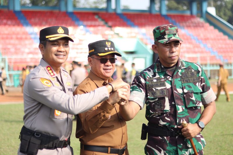 Banyumas – Jumat (22/8/25), TNI, Polri bersama Pemerintah Kabupaten Banyumas menggelar Apel 3 Pilar di lapangan Gor Satria Purwokerto. Kegiatan yang dimulai pukul 08.00 wib ini dihadiri oleh kurang lebih 1.000 orang, termasuk pejabat Forkopimda, PJU dan Kapolsek jajaran Polresta Banyumas, Danramil jajaran Kodim 0701/BMS, Camat, Lurah, Kepala Desa, Bhabinkamtibmas, Babinsa serta tamu undangan lainnya.