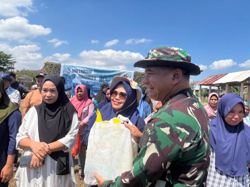 Selain latihan, prajurit TNI juga melibatkan masyarakat dalam kerja bakti, kebersihan lingkungan, dan pembagian sembako. Panglima Divif 3 Kostrad menegaskan, filosofi TNI tidak pernah lepas dari rakyat.