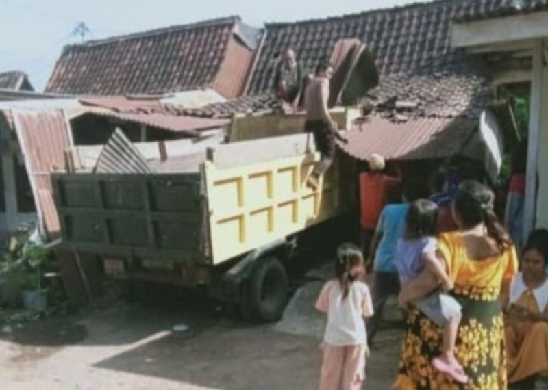 Selain rumah yang rusak berat, dump truck milik Abdul juga mengalami kerusakan pada bodi depan dan menabrak sepeda motor yang baru dibeli dua bulan lalu.