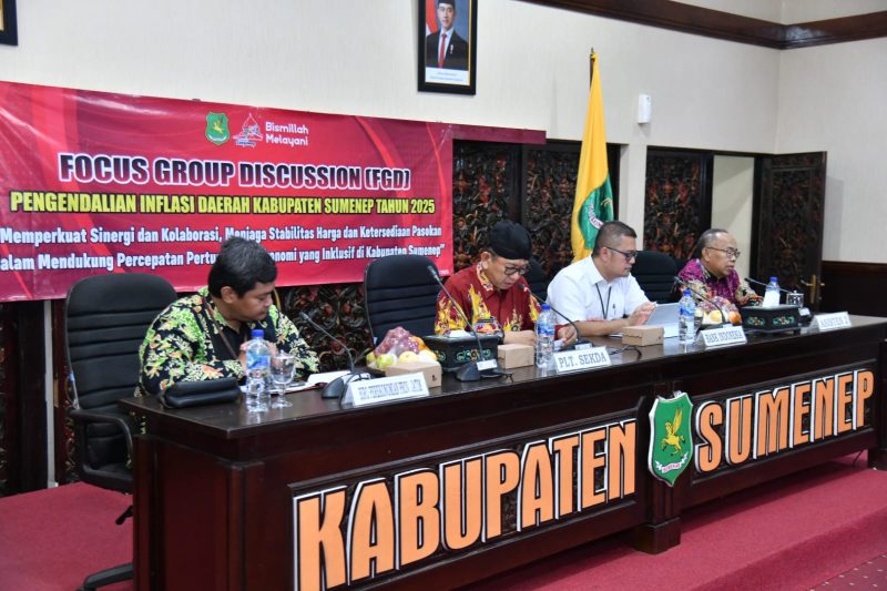 SUMENEP — Pemerintah Kabupaten Sumenep melalui Bagian Perekonomian dan Sekretariat SDA Daerah menggelar Focus Group Discussion (FGD) Pengendalian Inflasi Daerah di Ruang Rapat Graha Arya Wiraraja, lantai II Kantor Bupati Sumenep, Kamis (18/9/2025).