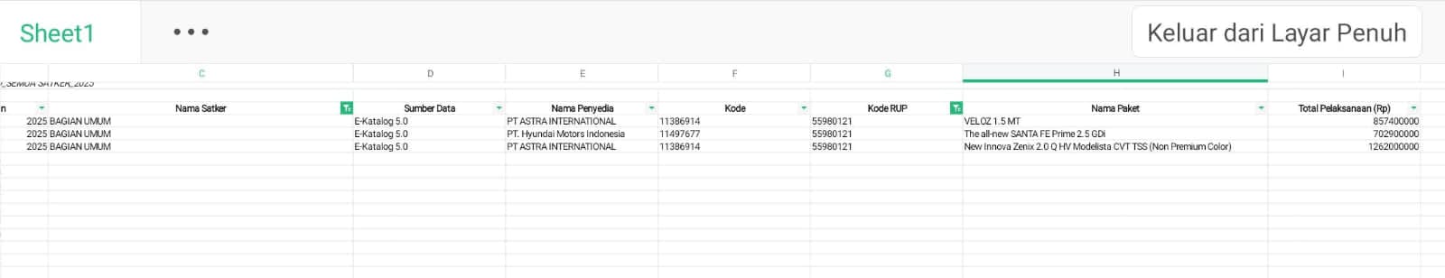 Berdasarkan data dari laman resmi Sistem Informasi Rencana Umum Pengadaan (SIRUP) LKPP, tercatat sejumlah unit mobil dinas baru dibeli menggunakan uang rakyat, di antaranya: