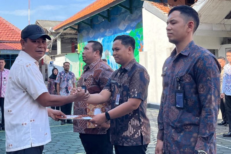 Acara pelepasan pegawai yang dilaksanakan pada apel pagi hari ini, juga dirangkaikan dengan acara penyematan kenaikan pangkat satu orang pegawai, “selamat atas kenaikan pangkat satu tingkat lebih tinggi kepada Kasubsi Bimkemaswat, M Khoirudin, semoga akan membawa semangat baru dalam bertugas dan tentunya dapat lebih berkontribusi untuk organisasi”, tambah Ary Nirwanto.