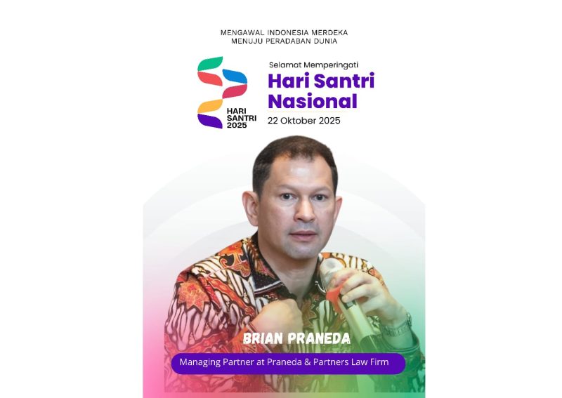 JAKARTA – Dalam momentum peringatan Hari Santri Nasional 2025, advokat ternama Jakarta, Brian Praneda menyampaikan ucapan selamat sekaligus pesan inspiratif bagi generasi muda Indonesia, khususnya kalangan santri yang terus berperan dalam membangun bangsa dengan nilai-nilai kejujuran dan keadilan.