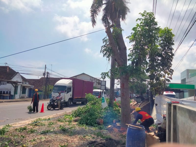 Pantauan di lapangan menunjukkan, beberapa pekerja berseragam rompi merah tampak menebang pohon di sisi selatan jalan nasional tersebut. Aktivitas itu menjadi perhatian warga sekitar lantaran dilakukan di area yang selama ini berfungsi sebagai jalur hijau dan peneduh jalan.