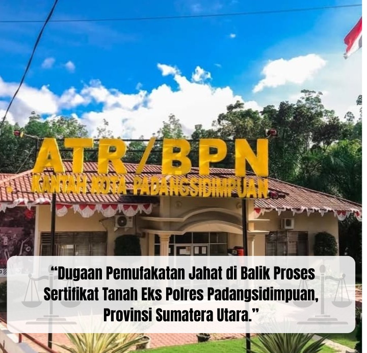 Padangsidimpuan, 28 Oktober 2025 — Kantor Pertanahan (Kantah) Kota Padangsidimpuan di bawah naungan Kementerian Agraria dan Tata Ruang/Badan Pertanahan Nasional (ATR/BPN) memberikan klarifikasi resmi atas dugaan ketidaksesuaian prosedur dalam penerbitan Sertipikat Hak Guna Pakai atas lahan eks Polres Kota Padangsidimpuan, Sumatera Utara. Dan Surat Hal Guna Pakai tersebut sebagai dasar untuk membuat Sertifikat Hak Milik (SHM) Polres Kota Padangsidimpuan dan sekarang dalam proses.
