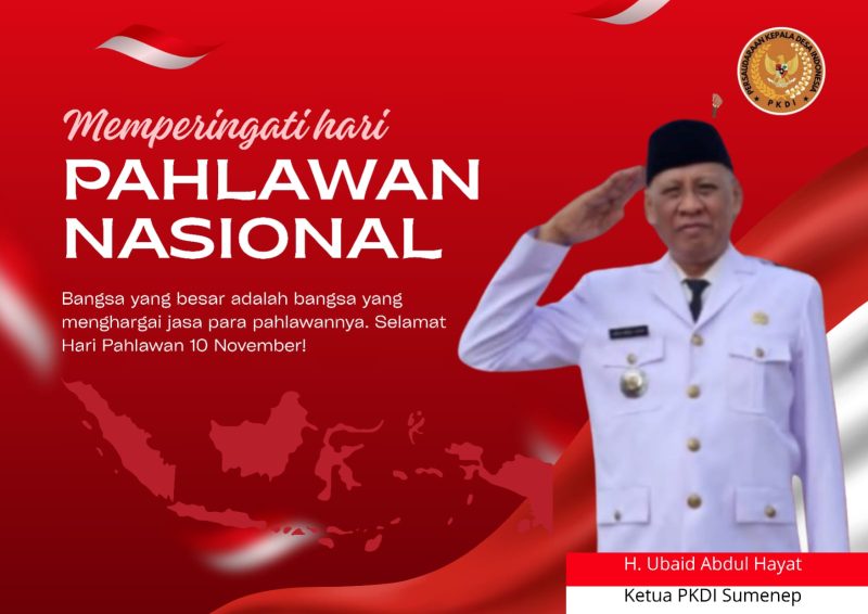 SUMENEP, Senin (10 November 2025) — Dalam semangat memperingati Hari Pahlawan Nasional 2025, Ketua Persaudaraan Kepala Desa Indonesia (PKDI) Kabupaten Sumenep, H. Ubaid Abdul Hayat, menyerukan pentingnya meneladani nilai-nilai perjuangan para pahlawan dalam konteks pembangunan masa kini, terutama di tingkat desa.