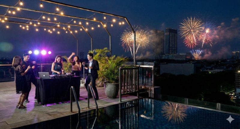 Mengangkat tema “Diskoria New Year Eve 2025”, hotel ini menyuguhkan dua agenda utama pada 31 Desember 2025: Gala Dinner di Diamond Ballroom serta After Party dengan DJ Performance di Pool Area lantai 5.