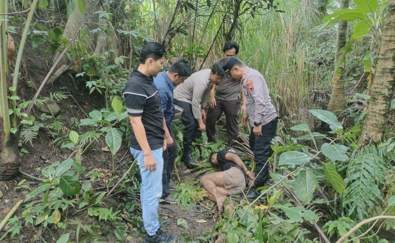 Berdasarkan keterangan saksi, polisi berhasil menemukan pelaku yang bersembunyi di semak-semak dekat aliran sungai tidak jauh dari lokasi kejadian.