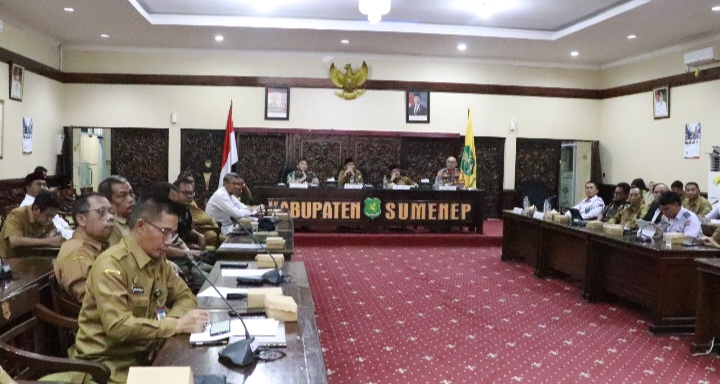 Kegiatan tersebut dilaksanakan di Kantor Pemerintah Daerah Kabupaten Sumenep dan diikuti oleh unsur Forum Koordinasi Pimpinan Daerah (Forkopimda) serta instansi terkait.