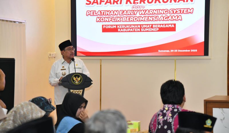 Hal itu disampaikan oleh Wakil Bupati Sumenep, KH. Imam Hasyim, saat menghadiri Safari Kerukunan dan Pelatihan Early Warning System Konflik Berdimensi Agama di Aula Bappeda, Rabu (24/12/2025).