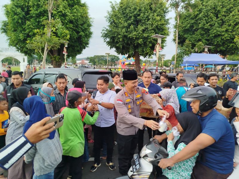 Kebumen – Polres Kebumen bersama PWRI DPC Kebumen menggelar kegiatan berbagi 1.000 paket takjil kepada pengendara dan masyarakat sekitar di Alun-Alun Pancasila Kebumen, Kamis (26/2/2026) sore.