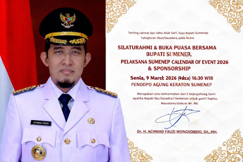 Sore ini, Senin (9/3/2026), Bupati Achmad Fauzi Wongsojudo dijadwalkan menggelar kegiatan silaturahmi sekaligus buka puasa bersama sebagai bentuk apresiasi kepada para pelaksana Sumenep Calendar of Event 2026 serta para sponsor yang telah mendukung berbagai agenda kegiatan di Kota Keris.