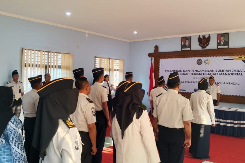 Kendal – Lembaga Pemasyarakatan (Lapas) Kendal melaksanakan pelantikan dan pengambilan sumpah jabatan pejabat manajerial yang dirangkaikan dengan kegiatan pisah sambut pejabat pada Kamis ( 16/4 ).