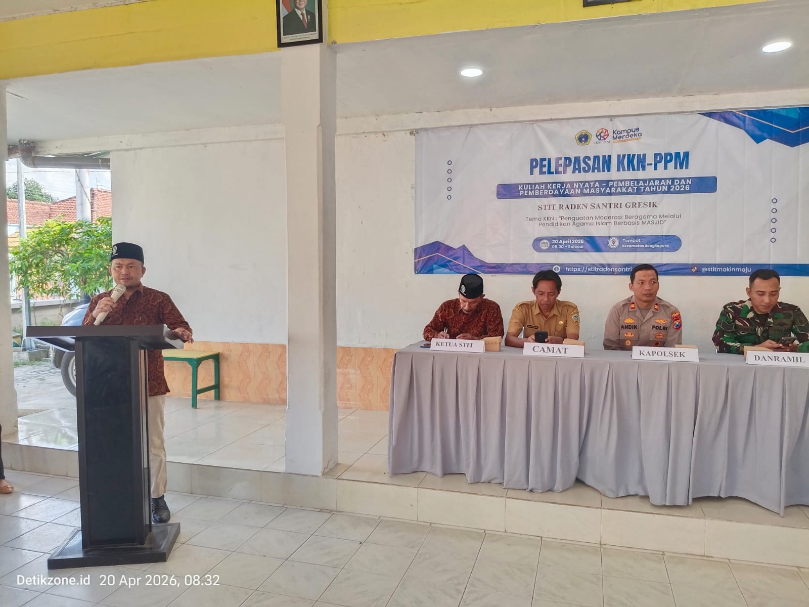 Acara ini dihadiri Kapolsek Sangkapura, unsur Kecamatan Sangkapura, serta Koramil Sangkapura sebagai bentuk dukungan terhadap pelaksanaan KKN-PPM 2026. Kegiatan tersebut mengusung tema “Penguatan Moderasi Beragama Melalui Pendidikan Agama Islam Berbasis Masjid.”