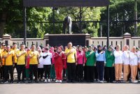 CIBINONG- Pj. Ketua Tim Penggerak Pemberdayaan Kesejahteraan Keluarga (TP PKK) Kabupaten Bogor, Siti Chomzah Asmawa mengikuti olahraga bersama dalam rangka Hari Kesatuan Gerak Bhayangkari…