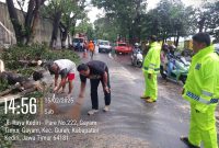 Kediri– Personel Polsek Gurah Polres Kediri turun tangan membantu evakuasi pohon tumbang yang menghalangi sebagian badan jalan di pinggiran jalan raya, Sabtu (15/2/2025) sore….