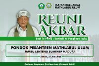 Sumenep – Dalam upaya mempererat jalinan ukhuwah islamiyah, Ikatan Keluarga Mathlabul Ulum (IKMU) akan menggelar menggelar Reuni Akbar 2025, Haul Muassis, Jumat (27 Juli 2025)….